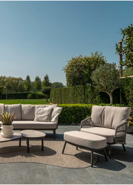 Alicante set anthr. bench organic and 2x living chair Das Alicante Loungeset bringt Komfort und Stil in Ihren Garten oder auf Ihre Terrasse. Das Set besteht aus einer 3-Sitzer-Bank und zwei Loungestühlen, jeweils gefertigt aus beschichtetem Aluminium in Anthrazit und umhüllt mit handgeflochtenem Rope, was eine moderne und luftige Optik verleiht. Die dicken, wetterfesten Kissen sorgen für einen weichen Sitzkomfort und sind gegen alle Witterungseinflüsse geschützt. Dank der langlebigen Materialien bleibt das Set über viele Jahre hinweg schön. Kombinieren Sie das Alicante Loungeset mit einem unserer maßgefertigten Couchtische und ergänzen Sie bei Bedarf den passenden Hocker, um eine komplette, einladende Außenlounge zu schaffen, in der Sie Sommertage und -abende in aller Ruhe genießen können. Alicante footstool anthracite with cushion Der Alicante Footstool in Anthrazit bietet zusätzlichen Komfort und komplettiert Ihre Loungeset. Das stabile, beschichtete Aluminiumgestell verleiht dem Hocker eine luftige, moderne Optik. Das dicke, wetterfeste Kissen sorgt für eine weiche Unterstützung der Füße und lädt dazu ein, sich an warmen Sommertagen entspannt zurückzulehnen. Dank der langlebigen Materialien bleibt der Footstool Saison für Saison in bestem Zustand. Der Hocker lässt sich perfekt mit den Loungestühlen und der Bank der Alicante-Kollektion kombinieren und schafft so eine komplette, einladende Außenlounge für Terrasse oder Garten. |