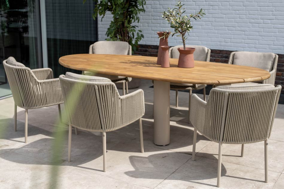 4 Seasons Outdoor tuinmeubelen worden gemaakt om het hele jaar door van te kunnen genieten. Dat merk je bijvoorbeeld aan het geweldige comfort van onze tuinsets en loungesets, maar dat merk je ook als je geen gebruik maakt van je tuinmeubels. De kussens in alle 4SO tuinmeubelen zijn namelijk weerbestendig, zodat je ze gewoon in je tuin set kunt laten liggen. Onze tuinkussens zijn altijd bij onze tuinmeubelen inbegrepen. 4 Seasons Outdoor kussens voelen comfortabel aan, bijna zoals de bank of de stoelen die binnen staan. Dat komt omdat bijna al onze kussens een kussenhoes hebben van ‘Olefin’ stof. Deze stof heeft allerlei unieke eigenschappen. De grondstof voor het maken van olefin is olie. Daar wordt al in een vroeg stadium de kleurstof aan toegevoegd zodat deze in de kern aanwezig is. Dat maakt de stof zo kleurvast, Uv-bestendig en waterafstotend. Zo wordt Olefin bijvoorbeeld ook gebruikt voor technische sportkleding en in de auto-industrie. |