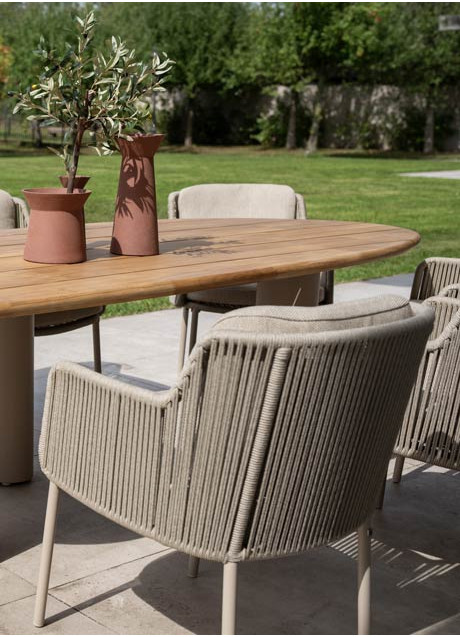 | Kurze Beschreibung | Der Bernini Dining Chair in warmem Latte-Ton vereint sommerlichen Komfort mit modernem Design. Das stabile, pulverbeschichtete Edelstahlgestell ist mit handgeflochtenem Rope in einem natürlichen Beige-Latte-Farbton umhüllt, was dem Stuhl eine stilvolle und beruhigende Ausstrahlung verleiht. Die mitgelieferten wetterbeständigen Kissen bieten ein weiches Sitzgefühl und sind resistent gegen Sonne, Regen und Temperaturschwankungen. Dank der ergonomisch geformten Rückenlehne genießen Sie mühelos lange, entspannte Abendessen im Freien. Der Bernini Dining Chair lässt sich perfekt mit einem unserer maßgefertigten Gartentische kombinieren und schafft so ein harmonisches, sommerliches Outdoor-Ambiente. |