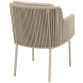 | Der Bernini Dining Chair in warmem Latte-Ton vereint sommerlichen Komfort mit modernem Design. Das stabile, pulverbeschichtete Edelstahlgestell ist mit handgeflochtenem Rope in einem natürlichen Beige-Latte-Farbton umhüllt, was dem Stuhl eine stilvolle und beruhigende Ausstrahlung verleiht. Die mitgelieferten wetterbeständigen Kissen bieten ein weiches Sitzgefühl und sind resistent gegen Sonne, Regen und Temperaturschwankungen. Dank der ergonomisch geformten Rückenlehne genießen Sie mühelos lange, entspannte Abendessen im Freien. Der Bernini Dining Chair lässt sich perfekt mit einem unserer maßgefertigten Gartentische kombinieren und schafft so ein harmonisches, sommerliches Outdoor-Ambiente. | |