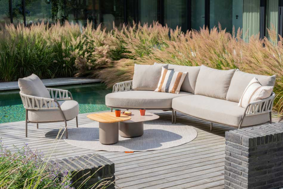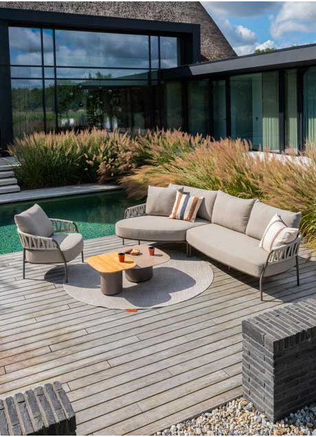| Kurze Beschreibung | Die Calma Chaise-Longue-Loungebank ist eine komfortable Outdoor-Loungebank, perfekt für entspannte Sommertage im Garten oder auf der Terrasse. Diese Loungebank kombiniert ein Chaise-Longue-Element mit einer großzügigen 2,5-Sitzer-Bank. Die extra dicken Polster bieten hohen Sitz- und Liegekomfort und machen lange Loungemomente besonders angenehm. Das stabile Aluminiumgestell in der Farbe Terre ist mit Rope in einem beigen Farbton umhüllt. Dadurch entsteht ein schöner Kontrast, der zu vielen unterschiedlichen Stilrichtungen passt. Dank der Verwendung wetterbeständiger Materialien ist diese Loungebank ideal für den langfristigen Einsatz im Außenbereich geeignet. Mit ihrer ruhigen Farbgebung und den eleganten Linien schafft die Calma Chaise Longue eine entspannte, sommerliche Atmosphäre und bietet einen angenehmen Ort, um das Leben im Freien in vollen Zügen zu genießen. |