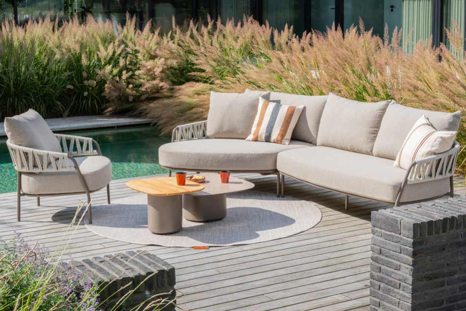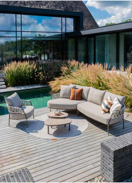 | Kurze Beschreibung | Die Calma Chaise Lounge Right Arm in der warmen Farbe Terre vereint schlankes Design mit optimalem Sitzkomfort für deinen Außenbereich. Der stabile, pulverbeschichtete Aluminiumrahmen bildet die Basis und ist mit handgeflochtenem Rope umhüllt, das der Bank eine luftige und moderne Ausstrahlung verleiht. Die dicken, wetterbeständigen Kissen sorgen für ein weiches und einladendes Sitzgefühl, ideal, um lange Sommertage oder -abende entspannt zu genießen. Dank des langlebigen Materials bleibt diese Lounge-Bank Saison für Saison in Top-Zustand. Diese Chaise Lounge Right Arm lässt sich perfekt mit dem 2,5-Sitzer Bank-Element derselben Kollektion und unseren maßgefertigten Couchtischen kombinieren, sodass du ein komplettes und stimmungsvolles Lounge-Ensemble für Garten oder Terrasse erschaffst. |