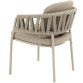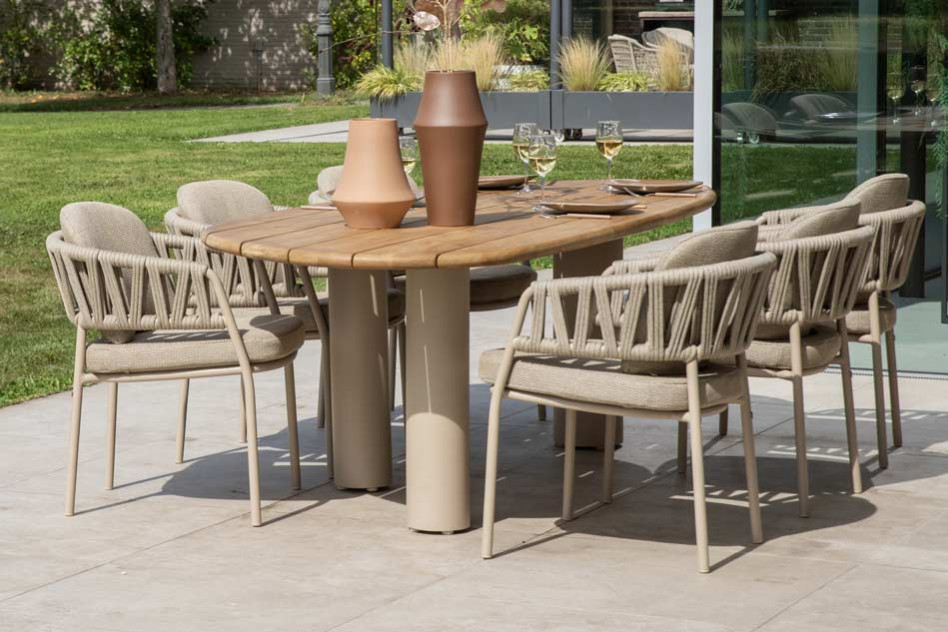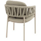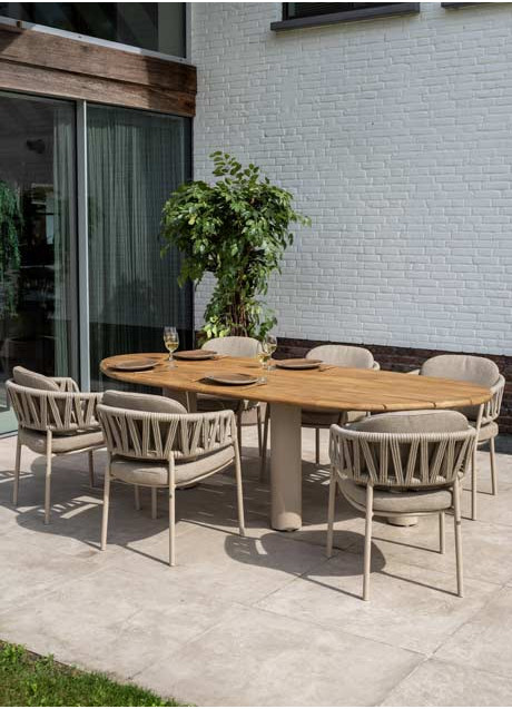 | Kurze Beschreibung | Der Calma Dining Chair in der warmen Farbe Latte bringt eine ruhige, stilvolle Atmosphäre und höchsten Komfort in Ihren Garten oder auf Ihre Terrasse. Das abgerundete Aluminiumgestell mit langlebiger Pulverbeschichtung ist mit handgeflochtenem Rope umhüllt und verleiht dem Stuhl eine moderne und zugleich natürliche Ausstrahlung. Die weichen Sitz- und Rückenkissen aus wetterbeständigem Stoff bieten optimalen Komfort und sind leicht zu pflegen. Dank des ergonomischen Designs können Sie stundenlang bequem in der Sonne speisen und entspannen. Kombinieren Sie den Calma Dining Chair mit einem unserer maßgefertigten Gartentische für ein harmonisches Gesamtbild. Dieser Stuhl ist ideal für sommerliche Abendessen und entspannte Momente im Freien. |