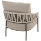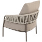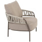 | Kurze Beschreibung | Der Calma Living Chair in der eleganten Farbe Terre bringt ein entspanntes und stilvolles Lounge-Erlebnis in deinen Garten oder auf deine Terrasse. Der stabile Aluminiumrahmen ist mit weichem Rope in natürlichen Erdtönen umhüllt, was eine luftige und moderne Ausstrahlung verleiht. Die mitgelieferten, wetterbeständigen Kissen sorgen für optimalen Sitzkomfort, sodass du stundenlang draußen entspannen kannst. Dank der fließenden, runden Arm- und Rückenlehnen sitzt du ergonomisch korrekt. Kombiniere diesen Loungesessel mit den weiteren Lounge-Möbeln der Calma-Kollektion. Vervollständige das Ensemble mit einem maßgefertigten Couchtisch aus unserem Sortiment und schaffe eine komplette, komfortable Außenaufstellung, die zu langen Sommernachmittagen und -abenden mit Familie und Freunden einlädt. |