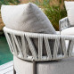 | Der Calma Living Chair in der eleganten Farbe Terre bringt ein entspanntes und stilvolles Lounge-Erlebnis in deinen Garten oder auf deine Terrasse. Der stabile Aluminiumrahmen ist mit weichem Rope in natürlichen Erdtönen umhüllt, was eine luftige und moderne Ausstrahlung verleiht. Die mitgelieferten, wetterbeständigen Kissen sorgen für optimalen Sitzkomfort, sodass du stundenlang draußen entspannen kannst. Dank der fließenden, runden Arm- und Rückenlehnen sitzt du ergonomisch korrekt. Kombiniere diesen Loungesessel mit den weiteren Lounge-Möbeln der Calma-Kollektion. Vervollständige das Ensemble mit einem maßgefertigten Couchtisch aus unserem Sortiment und schaffe eine komplette, komfortable Außenaufstellung, die zu langen Sommernachmittagen und -abenden mit Familie und Freunden einlädt. | |