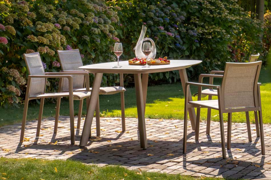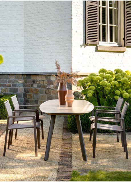Aluminium ist beliebt als Grundmaterial für Gartenmöbel. Aluminium-Gartenmöbel haben ein elegantes Aussehen, sind leicht und wartungsfreundlich. Außerdem ist es besser verformbar und elastischer als beispielsweise Stahl. Dies erleichtert den Produktionsprozess mit geringeren Produktionskosten. Insbesondere unsere Stuhlkollektion besteht aus Aluminiumteilen. |
