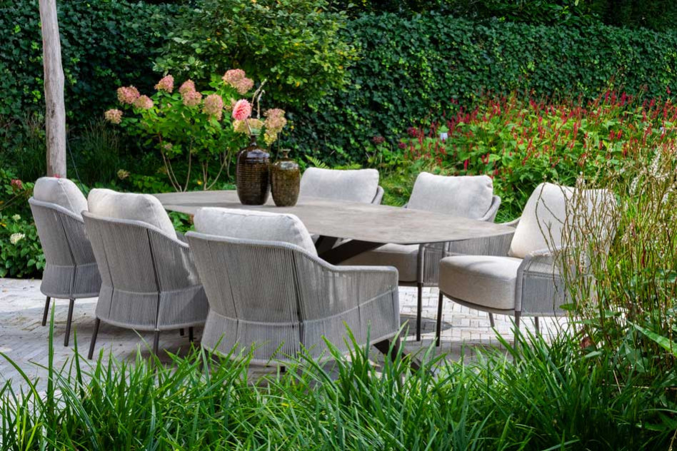 4 Seasons Outdoor tuinmeubelen worden gemaakt om het hele jaar door van te kunnen genieten. Dat merk je bijvoorbeeld aan het geweldige comfort van onze tuinsets en loungesets, maar dat merk je ook als je geen gebruik maakt van je tuinmeubels. De kussens in alle 4SO tuinmeubelen zijn namelijk weerbestendig, zodat je ze gewoon in je tuin set kunt laten liggen. Onze tuinkussens zijn altijd bij onze tuinmeubelen inbegrepen. 4 Seasons Outdoor kussens voelen comfortabel aan, bijna zoals de bank of de stoelen die binnen staan. Dat komt omdat bijna al onze kussens een kussenhoes hebben van ‘Olefin’ stof. Deze stof heeft allerlei unieke eigenschappen. De grondstof voor het maken van olefin is olie. Daar wordt al in een vroeg stadium de kleurstof aan toegevoegd zodat deze in de kern aanwezig is. Dat maakt de stof zo kleurvast, Uv-bestendig en waterafstotend. Zo wordt Olefin bijvoorbeeld ook gebruikt voor technische sportkleding en in de auto-industrie. |