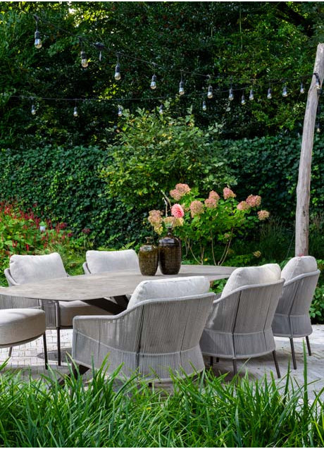 Florence living chair terre with 2 cushions Der Florence Living Chair in der eleganten Farbe Terre ist der ideale Loungesessel für entspannte Sommertage in Ihrem Garten. Der Rahmen aus pulverbeschichtetem Aluminium ist mit dicht gewebtem Rope umhüllt, was für ein modernes und komfortables Design sorgt. Die mitgelieferten, wetterfesten Kissen bieten optimalen Sitzkomfort, sodass Sie stundenlang warme Tage und lange Abende im Freien genießen können. Das warme, erdige Farbschema der Terre-Töne harmoniert perfekt mit natürlichen Gartenelementen und schafft eine einladende, sommerliche Atmosphäre. Kombinieren Sie den Stuhl mit einem maßgefertigten Couchtisch für ein komplettes Lounge-Erlebnis. Nachhaltig, stilvoll und komfortabel, der Florence Living Chair Terre macht Ihren Außenbereich perfekt. Florence 3 seater bench terre with 4 cushions Die Florence 3-Sitzer Bank Terre ist die ideale Loungemöglichkeit für entspannte Sommertage in Ihrem Garten. Der stabile Rahmen aus pulverbeschichtetem Aluminium ist mit handgewebtem Rope umhüllt, was ein modernes und komfortables Design schafft. Die drei mitgelieferten Kissen machen die Bank besonders weich und laden zu stundenlangem Genießen warmer Tage und langer Abende im Freien ein. Das warme, erdige Farbschema der Terre-Töne harmoniert wunderbar mit natürlichen Gartenelementen und schafft eine gemütliche, sommerliche Atmosphäre. Kombinieren Sie die Bank mit einem maßgefertigten Couchtisch für eine komplette Lounge-Ecke und nutzen Sie Ihren Außenbereich optimal. Florence footstool terre with cushion Der Florence Footstool Terre ist die perfekte Ergänzung zu den loungemöbeln der Florence-Kollektion in Terre-Farbe und sorgt für ultimativen Komfort im Sommer. Der stabile Rahmen aus pulverbeschichtetem Aluminium ist mit handgewebtem Rope umhüllt, was ein stilvolles und langlebiges Design schafft. Das mitgelieferte, wetterfeste Kissen bietet eine weiche, bequeme Ablage für die Füße oder dient als zusätzliche Sitzgelegenheit an sonnigen Tagen und langen Abenden im Freien. Das warme, erdige Farbschema der Terre-Töne harmoniert nahtlos mit den restlichen Terre-farbenen Loungemöbeln und bringt eine gemütliche, sommerliche Atmosphäre in Ihren Garten. So entsteht ein komplettes und einladendes Loungeset, das perfekt zu Ihnen passt. Sofie coffee table ceramic 70 X 80 X 30 cm Der Sofie Beistelltisch ist die perfekte Ergänzung für deinen Außenbereich. Die elegante keramische Tischplatte ist praktisch und hat eine stilvolle Optik, während das pulverbeschichtete Edelstahlgestell für eine stabile Basis sorgt. Mit den Maßen 70 x 80 x 30 cm bietet dieser Beistelltisch ausreichend Platz für deine Lieblingsgetränke oder Bücher. Das stabile Gestell in Terre-Farbe macht den Tisch zu einer vielseitigen Wahl, die nahtlos zu verschiedenen Loungesets passt. Der Sofie Beistelltisch ist eine ausgezeichnete Wahl für diejenigen, die einen langlebigen und stilvollen Tisch suchen, der sich leicht mit anderen Gartenmöbeln kombinieren lässt. |