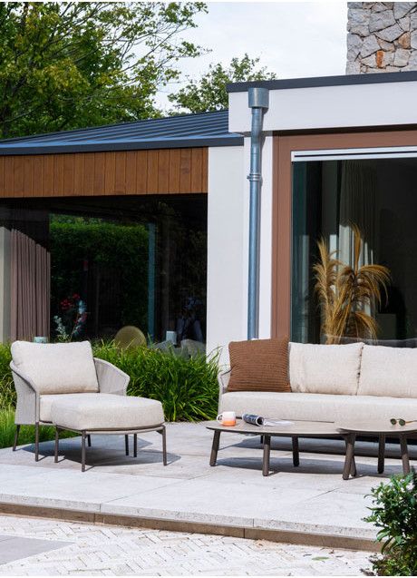 Florence living chair terre with 2 cushions Der Florence Living Chair in der eleganten Farbe Terre ist der ideale Loungesessel für entspannte Sommertage in Ihrem Garten. Der Rahmen aus pulverbeschichtetem Aluminium ist mit dicht gewebtem Rope umhüllt, was für ein modernes und komfortables Design sorgt. Die mitgelieferten, wetterfesten Kissen bieten optimalen Sitzkomfort, sodass Sie stundenlang warme Tage und lange Abende im Freien genießen können. Das warme, erdige Farbschema der Terre-Töne harmoniert perfekt mit natürlichen Gartenelementen und schafft eine einladende, sommerliche Atmosphäre. Kombinieren Sie den Stuhl mit einem maßgefertigten Couchtisch für ein komplettes Lounge-Erlebnis. Nachhaltig, stilvoll und komfortabel, der Florence Living Chair Terre macht Ihren Außenbereich perfekt. Florence 3 seater bench terre with 4 cushions Die Florence 3-Sitzer Bank Terre ist die ideale Loungemöglichkeit für entspannte Sommertage in Ihrem Garten. Der stabile Rahmen aus pulverbeschichtetem Aluminium ist mit handgewebtem Rope umhüllt, was ein modernes und komfortables Design schafft. Die drei mitgelieferten Kissen machen die Bank besonders weich und laden zu stundenlangem Genießen warmer Tage und langer Abende im Freien ein. Das warme, erdige Farbschema der Terre-Töne harmoniert wunderbar mit natürlichen Gartenelementen und schafft eine gemütliche, sommerliche Atmosphäre. Kombinieren Sie die Bank mit einem maßgefertigten Couchtisch für eine komplette Lounge-Ecke und nutzen Sie Ihren Außenbereich optimal. Sofie coffee table ceramic 70 X 80 X 30 cm Der Sofie Beistelltisch ist die perfekte Ergänzung für deinen Außenbereich. Die elegante keramische Tischplatte ist praktisch und hat eine stilvolle Optik, während das pulverbeschichtete Edelstahlgestell für eine stabile Basis sorgt. Mit den Maßen 70 x 80 x 30 cm bietet dieser Beistelltisch ausreichend Platz für deine Lieblingsgetränke oder Bücher. Das stabile Gestell in Terre-Farbe macht den Tisch zu einer vielseitigen Wahl, die nahtlos zu verschiedenen Loungesets passt. Der Sofie Beistelltisch ist eine ausgezeichnete Wahl für diejenigen, die einen langlebigen und stilvollen Tisch suchen, der sich leicht mit anderen Gartenmöbeln kombinieren lässt. |