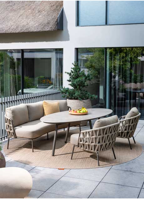 | Kurze Beschreibung | Der Mallorca Low Dining Chair vereint stilvolles Design mit maximalem Komfort für Ihren Außenbereich. Das Gestell aus Terre-beschichtetem Edelstahl ist mit handgeflochtenem Rope in warmen Beige-Taupe-Tönen umhüllt, was der Stuhl eine natürliche Ausstrahlung verleiht. Die großzügigen, wetterbeständigen Kissen bieten ein weiches und komfortables Sitzgefühl, ideal für lange Sommerabende am Tisch. Das subtil abgerundete Design unterstützt eine ergonomische Sitzhaltung, während das geflochtene Rope dem Stuhl eine zeitlose Optik verleiht. Der Mallorca Low-Dining Chair lässt sich perfekt mit unseren maßgefertigten Low-Dining-Tischen kombinieren und zusammen mit der passenden Low-Dining-Bank aus der Mallorca-Kollektion entsteht ein komplettes Low-Dining-Set, das zum Dinieren, Entspannen und Genießen in der Sonne einlädt. |