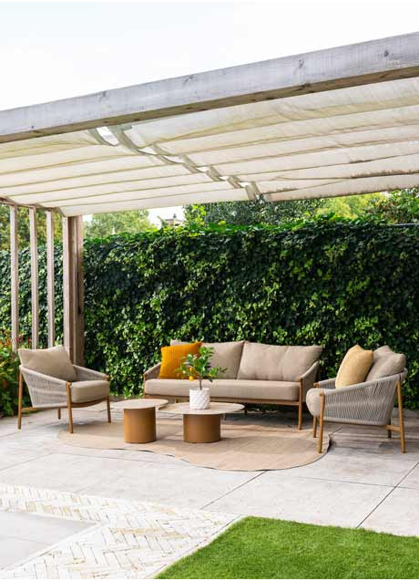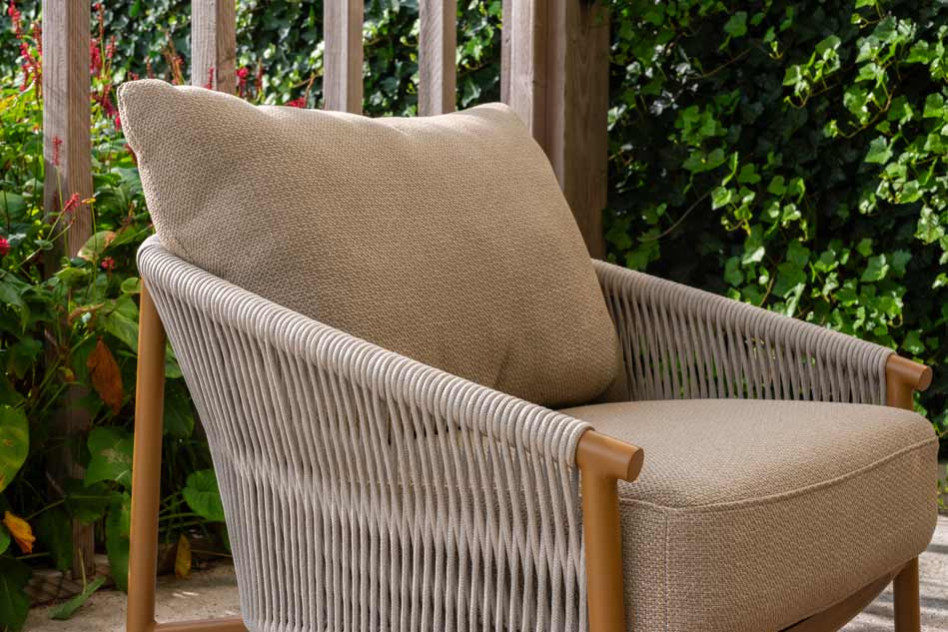 Milos living chair amber with 2 cushions Der Milos Lounge-Gartenstuhl vereint Stil, Komfort und Qualität in einem eleganten Design. Das robuste Gestell aus pulverbeschichtetem Aluminium in warmem Amber-Ton sorgt für Stabilität und eine luxuriöse Ausstrahlung. Das weiche Rope-Geflecht rund um den Stuhl verleiht ihm eine luftige Leichtigkeit und bietet gleichzeitig ein angenehmes Sitzgefühl. Die wetterfesten Kissen aus strapazierfähigem Outdoor-Stoff sind beständig gegen Sonne, Regen und Schimmel – so können Sie das ganze Jahr über unbeschwert entspannen. Perfekt kombinierbar mit unseren maßgefertigten Couchtischen bildet der Milos Lounge-Stuhl das Herzstück Ihres Außenbereichs. Eine ideale Wahl für entspannte Sommertage und lange, stimmungsvolle Abende im Garten. Milos 3 seater bench amber with 3 cushions Die Milos 3-Sitzer-Bank Amber mit 3 Kissen bietet die perfekte Balance zwischen Komfort, Design und Qualität. Das schlanke Gestell aus pulverbeschichtetem Aluminium in einem warmen Amber-Ton verleiht der Bank ein modernes Erscheinungsbild und ist gleichzeitig absolut wetterbeständig. Das feine Rope-Geflecht an Rückenlehne und Armlehnen sorgt für eine luftige, stilvolle Optik und bietet zugleich angenehmen Halt. Die drei wetterfesten Kissen aus hochwertigem Outdoor-Stoff laden zum entspannten Sonnenbaden und Verweilen ein. Kombinieren Sie diese Lounge-Gartenbank mit einem unserer maßgefertigten Couchtische und schaffen Sie eine stimmungsvolle Sitzecke, in der Sie den ganzen Sommer über wunderbar relaxen können. |