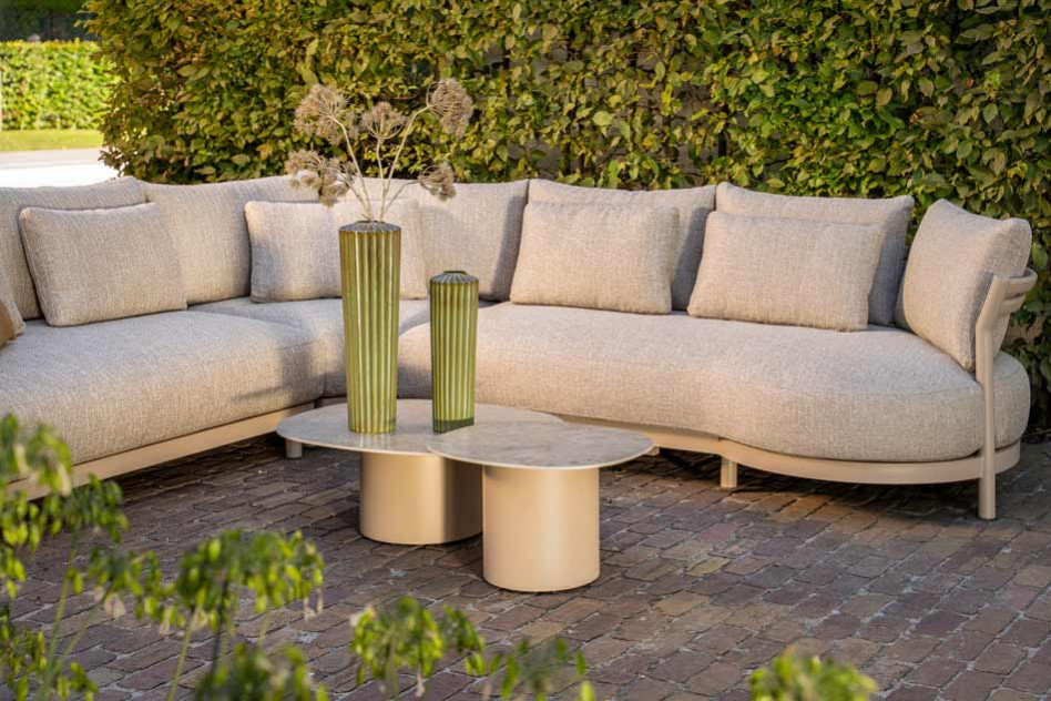Mykonos 2.5 seater bench right arm latte with 5 cushions Die Mykonos 2.5-Sitzer Bank mit rechter Armlehne in der Farbe Latte kombiniert modernes Design mit höchstem Komfort. Der pulverbeschichtete Aluminiumrahmen in einem sanften Latte-Ton sorgt für ein elegantes, zeitgemäßes Erscheinungsbild und ist äußerst pflegeleicht. Die fünf mitgelieferten wetterbeständigen Kissen aus hochwertigem Outdoor-Textil bieten ein luxuriöses Sitzerlebnis und sind gegen Witterungseinflüsse resistent. Dank des Quick-Dry-Schaums trocknen die Kissen nach einem Regenschauer schnell wieder. Durch die Kombination der Lounge-Elemente aus der Mykonos-Kollektion können Sie eine Sitzgruppe gestalten, die perfekt zu Ihnen passt. Kombinieren Sie die Loungegarnitur mit einem unserer maßgefertigten Couchtische und schaffen Sie einen stilvollen Außenbereich, in dem Sie lange, sonnige Tage entspannt genießen können. Mykonos XL Corner latte with 4 cushions Die Mykonos XL Corner in der Farbe Latte bildet das stilvolle Herzstück Ihrer Loungegarnitur. Mit ihrem robusten, pulverbeschichteten Aluminiumrahmen in einem warmen Latte-Ton strahlt dieses Lounge-Element moderne Eleganz aus. Der Aluminiumrahmen ist wetterbeständig und pflegeleicht, ideal, um das Mykonos Loungeset das ganze Jahr über im Freien stehen zu lassen. Die vier wetterbeständigen Kissen aus hochwertigem Outdoor-Textil bieten ein herrlich komfortables Sitzerlebnis und sind zudem resistent gegen Witterungseinflüsse. Mit diesem XL-Eckelement schaffen Sie im Handumdrehen eine gemütliche Ecklounge, in der Sie entspannen und den Sommer genießen können. Kombinieren Sie die Mykonos XL Corner mit anderen Modulen derselben Kollektion und einem unserer maßgefertigten Couchtische für eine luxuriöse Sommerlounge im Freien, in der Komfort und Stil perfekt harmonieren. Mykonos cuddle bench 3 seater left latte with 6 cushions Die Mykonos Cuddle 3-Sitzer-Bank mit Armlehne auf der linken Seite bietet ultimativen Komfort und modernen Stil für Ihren Außenbereich. Der robuste, pulverbeschichtete Aluminiumrahmen in einem sanften Latte-Ton ist pflegeleicht und wetterbeständig. Die sechs wetterfesten Kissen aus hochwertigem Outdoor-Textil sorgen für ein luxuriöses Sitzgefühl. Dank des großzügigen und einladenden Designs ist dieses Lounge-Sofa ideal, um sich zu entspannen oder gemeinsam lange Sommertage zu genießen. Kombinieren Sie die Mykonos Cuddle Bench mit anderen Modulen aus der Mykonos-Kollektion und einem unserer maßgefertigten Couchtische für ein stilvolles und komfortables Loungeset. |