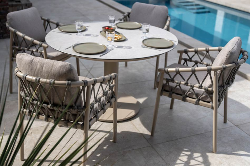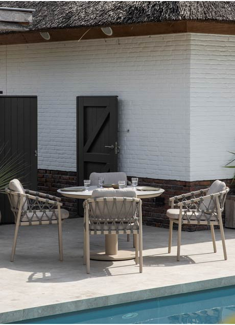 | Kurze Beschreibung | Der Piacenza Dining Chair in sanftem Latte-Ton vereint modernes Design mit sommerlichem Komfort. Das luftige Rope-Geflecht rund um den beschichteten Aluminiumrahmen verleiht dem Stuhl ein stilvolles, zeitgemäßes Erscheinungsbild, das perfekt in jeden Garten oder auf jede Terrasse passt. Der Stuhl ist leicht, langlebig und wetterbeständig, ideal für den täglichen Einsatz im Freien. Die wetterfesten Kissen fühlen sich angenehm weich an, trocknen schnell und bieten langanhaltenden Sitzkomfort bei gemütlichen Abendessen oder entspannten Momenten im Freien. Kombinieren Sie den Piacenza Dining Chair mit einem maßgefertigten Gartentisch, um eine harmonische und elegante Outdoor-Essgruppe zu schaffen, in der Stil und Komfort perfekt miteinander verschmelzen. |