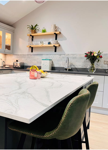 | Kurze Beschreibung | Die Dekton Liquid Sky-Platte hat ein wirbelndes, marmoriertes und wolkiges Muster, das die Prinzipien der Flüssigkeit ehrt. Der einzigartige Look des Liquid Sky besteht aus einer weißen Basis mit fließenden grauen Adern. Die Platte hat ein einzigartiges, wirbelndes und dennoch weiches Aussehen mit einem matten Finish. Das Dekton Liquid ist Teil der Liquid-Kollektion und in verschiedenen Platten-stärken, -formen und -größen erhältlich. |
