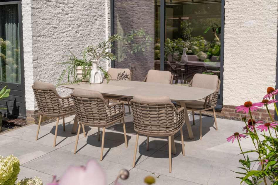| Kurze Beschreibung | Bringen Sie die Wärme des Südens in Ihren eigenen Garten mit dem Puglia Living Chair in sanfter Latte-Farbe. Dieser komfortable Lounge-Stuhl kombiniert ein stabiles Rahmen aus pulverbeschichtetem Aluminium mit handgeflochtenem Rope für ein natürliches, zeitgemäßes Erscheinungsbild. Die mitgelieferten, wetterbeständigen Kissen laden zu stundenlangem Entspannen ein, egal ob beim Genießen der Morgensonne oder langer Sommerabende mit Freunden. Dank der Verwendung langlebiger Materialien ist der Stuhl wind- und wetterfest. Kombinieren Sie den Puglia Living Chair mit einem unserer maßgefertigten Couchtische und schaffen Sie eine stilvolle Lounge-Ecke, die das ganze Saison über ein sommerliches Gefühl vermittelt. |
