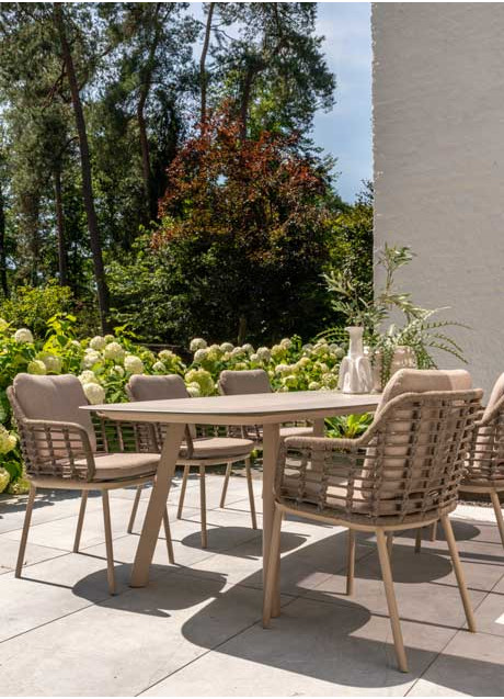 Aluminium ist beliebt als Grundmaterial für Gartenmöbel. Aluminium-Gartenmöbel haben ein elegantes Aussehen, sind leicht und wartungsfreundlich. Außerdem ist es besser verformbar und elastischer als beispielsweise Stahl. Dies erleichtert den Produktionsprozess mit geringeren Produktionskosten. Insbesondere unsere Stuhlkollektion besteht aus Aluminiumteilen. |